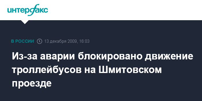 Из-за аварии блокировано движение троллейбусов на Шмитовском проезде