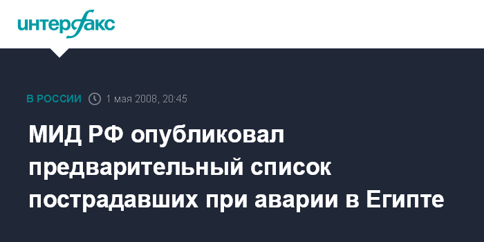 МИД РФ опубликовал предварительный список пострадавших при аварии в Египте