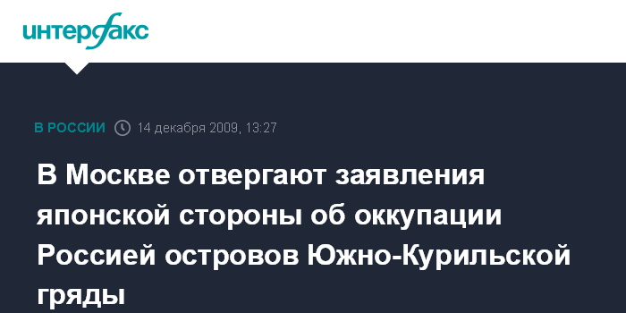 Москва. 14 декабря. INTERFAX.RU - Заявления японской стороны об оккупации Россией островов Южно-Курильской гряды неприемлемы, заявляет глава МИД РФ Сергей Лавров.