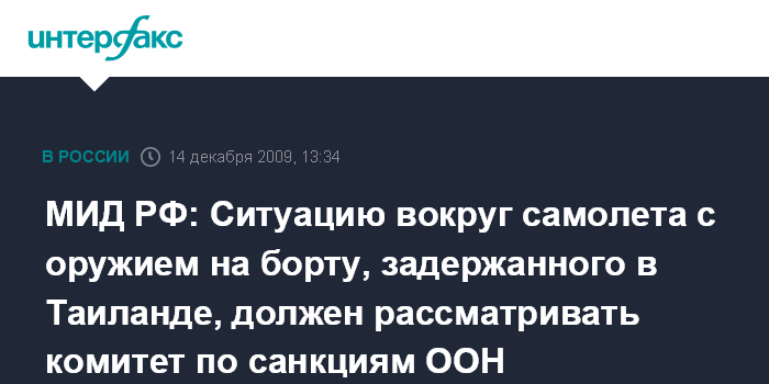 МИД РФ: Ситуацию вокруг самолета с оружием на борту, задержанного в Таиланде, должен рассматривать комитет по санкциям ООН