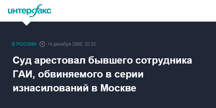 Москва. 14 декабря. INTERFAX.RU - Симоновский суд Москвы санкционировал арест бывшего сотрудника ГИБДД Артура Косицына, которого подозревают в двух десятках изнасилований, сообщила "Интерфаксу" в понедельник руководитель пресс-службы Мосгорсуда Анна Усачева.