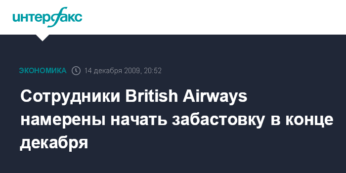 Сотрудники British Airways намерены начать забастовку в конце декабря
