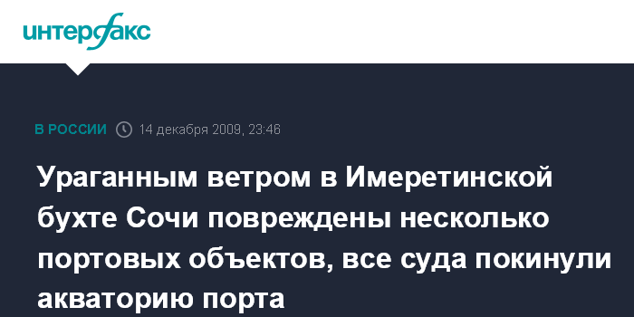 Ураганным ветром в Имеретинской бухте Сочи повреждены несколько портовых объектов, все суда покинули акваторию порта
