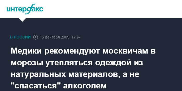 Медики рекомендуют москвичам в морозы утепляться одеждой из натуральных материалов, а не "спасаться" алкоголем