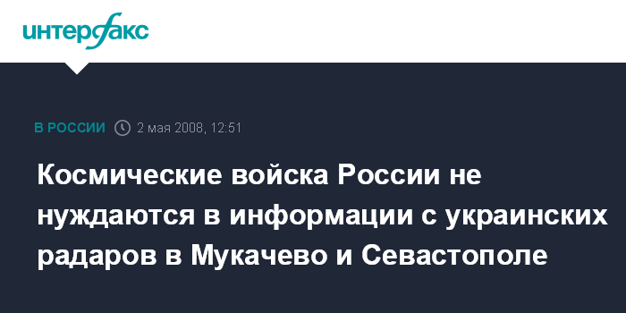 Как сообщалось, 12 февраля 2008 года президент России подписал закон "О денонсации соглашения между правительством РФ и правительством Украины о средствах систем предупреждения о ракетном нападении и контроля космического пространства".