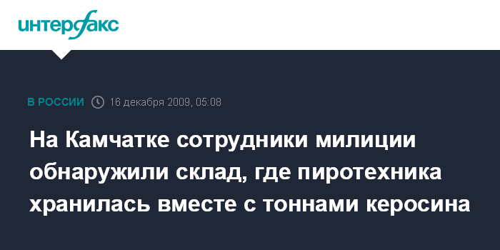"Склад, где 6,5 тыс пиротехнических изделий 4 и 5 класса опасности хранились вместе с тремя тоннами керосина априори нельзя считать отвечающим требованиям пожарной безопасности", - сообщили агентству "Интерфакс-Дальний Восток" в пресс-службе УВД по Камчатскому края в среду.
