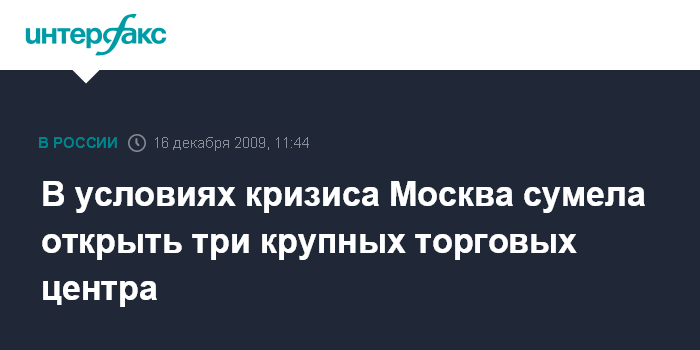 В условиях кризиса Москва сумела открыть три крупных торговых центра