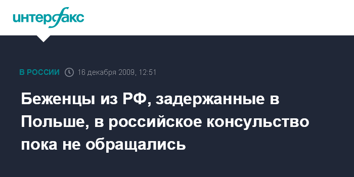 Москва. 15 декабря. INTERFAX.RU - Российское генконсульство в Познани готово защищать интересы задержанных польскими правоохранителями беженцев - граждан РФ, если от них поступит соответствующий запрос. "Основная масса задержанных беженцев - жители Чечни, которые здесь находятся с целью получения убежища", - сообщил "Интерфаксу" в среду генеральный консул России в городе Познань Владимир Ткачев. Он добавил, что при любом обращении генконсульство будет прояснять ситуацию, "если дело будет касаться непосредственно российских граждан". "Но от них никаких обращений к нам не поступало", - сказал дипломат. Он отметил, что, по данным российской дипмиссии в Познани, при задержании польские правоохранительные органы не применяли силу.