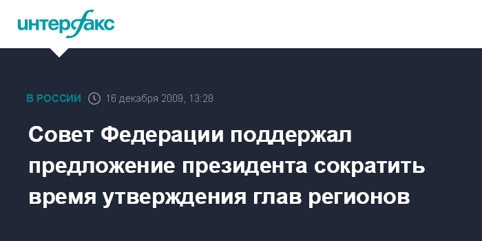 Совет Федерации поддержал предложение президента сократить время утверждения глав регионов