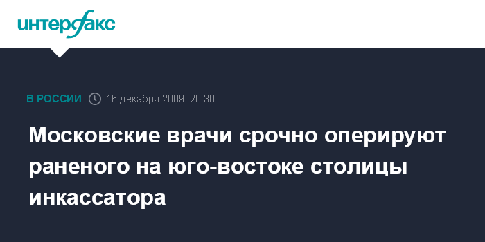 Москва. 16 декабря. INTERFAX.RU – В городской клинической больнице №68 срочно оперируют инкассатора, раненного в среду вечером возле торгового центра "Москва", сообщил "Интерфаксу" источник в медицинских кругах города.