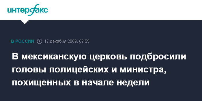 В мексиканскую церковь подбросили головы полицейских и министра, похищенных в начале недели