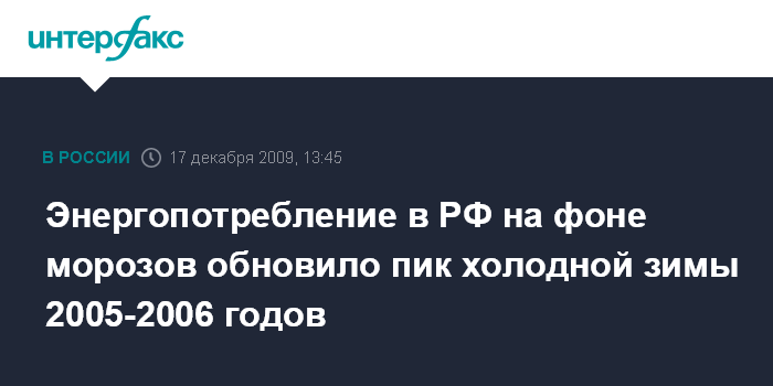 Энергопотребление в РФ на фоне морозов обновило пик холодной зимы 2005-2006 годов