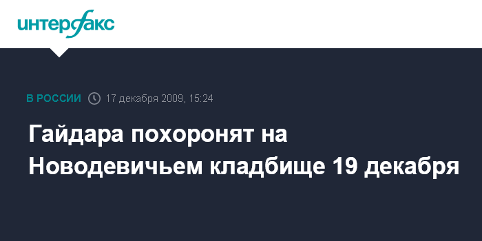 Гайдара похоронят на Новодевичьем кладбище 19 декабря