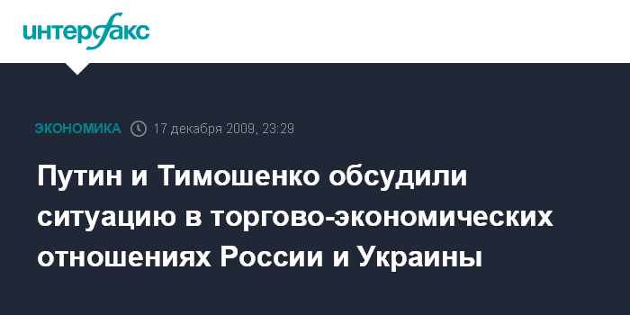 Путин и Тимошенко обсудили ситуацию в торгово-экономических отношениях России и Украины