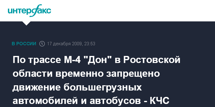 По трассе М-4 "Дон" в Ростовской области временно запрещено движение большегрузных автомобилей и автобусов - КЧС