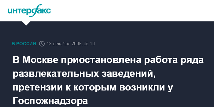 Москва. 18 декабря. ИНТЕРФАКС - Московские суды продолжают приостанавливать деятельность развлекательных заведений в связи с нарушениями норм противопожарной безопасности.