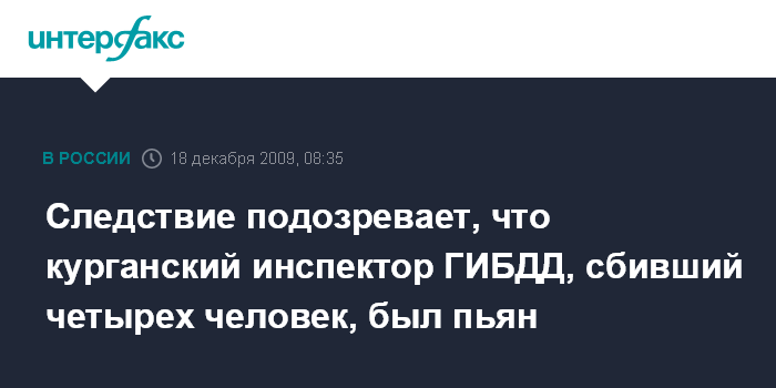 Как сообщалось ранее, 16 декабря инспектор спецроты отдельного батальона ДПС УГИБДД при УВД по Курганской области, двигаясь на личном автомобиле, сбил четырех пешеходов, идущих по краю дороги в попутном направлении. В результате один молодой человек погиб, второй впал в кому, а еще один молодой человек и девушка получили травмы.