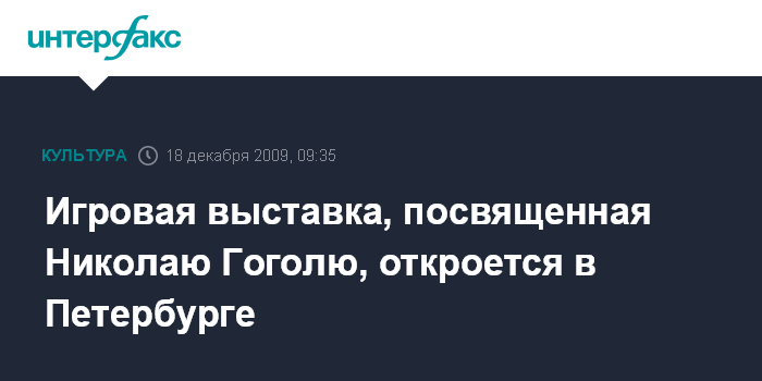 Игровая выставка, посвященная Николаю Гоголю, откроется в Петербурге