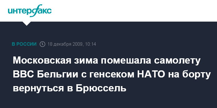 Московская зима помешала самолету ВВС Бельгии с генсеком НАТО на борту вернуться в Брюссель