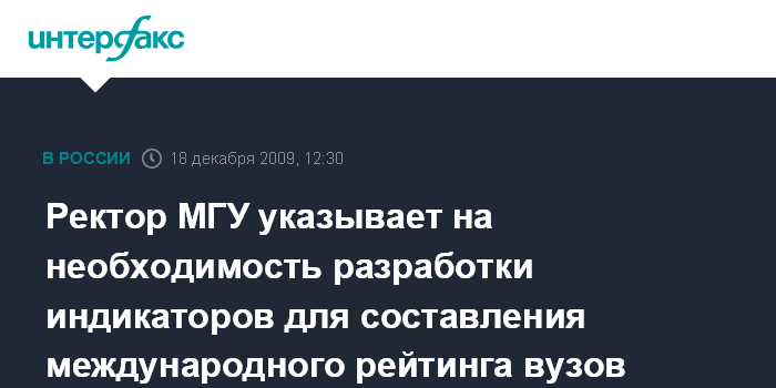 Москва. 18 декабря. INTERFAX.RU - Ректор МГУ Виктор Садовничий считает необъективными методики некоторых международных рейтингов вузов, в частности, методики "Таймс".