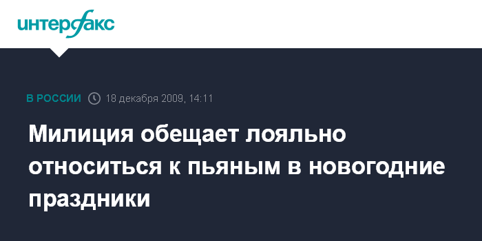 Милиция обещает лояльно относиться к пьяным в новогодние праздники