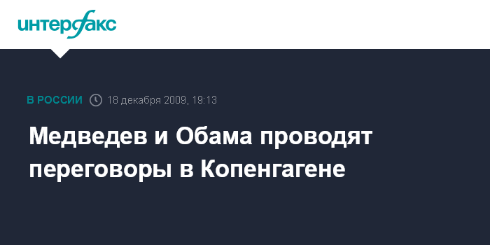 Москва. 18 декабря. INTERFAX.RU - Президенты России и США Дмитрий Медведев и Барак Обама проводят переговоры в Копенгагене после пленарного заседания Международной конференции ООН по проблеме глобального изменения климата. Встреча Медведева и Обамы, проходящая за закрытыми дверями, - шестая по счету. В последний раз лидеры проводили переговоры месяц назад "на полях" саммита АТЭС в Сингапуре.