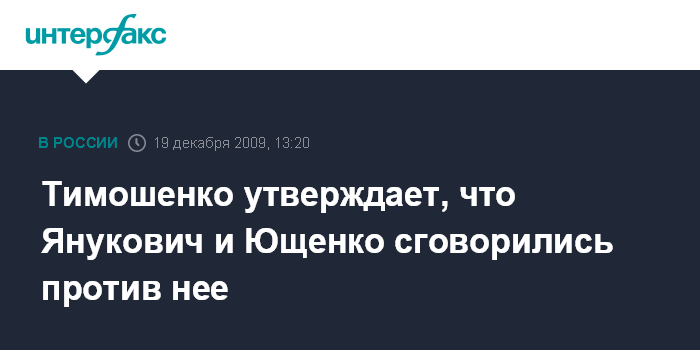 Тимошенко утверждает, что Янукович и Ющенко сговорились против нее