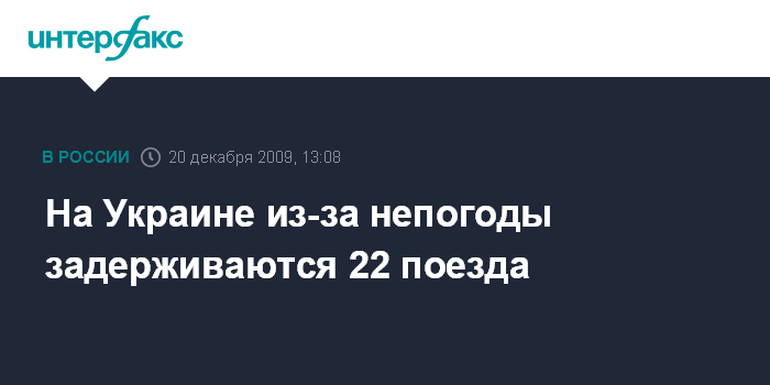 Киев. 20 декабря. INTERFAX.RU - В связи со сложными метеорологическими условиями на Украине задерживается движение 22 поездов (19 пассажирских и 3 пригородных), не работают аэропорт в городе Северодонецк, а также порты в Мариуполе, Бердянске, Севастополе и Феодосии. Порт Белгород-Днестровский в Одесской области работает частично. Такая оперативная информация по состоянию на утро воскресенья от пресс-службы Министерства транспорта и связи Украины.