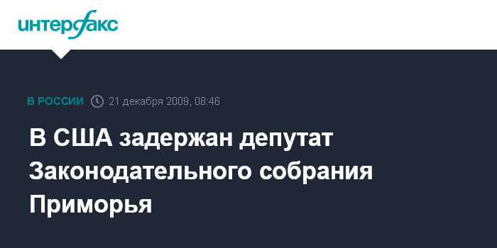 Москва. 21 декабря. INTERFAX.RU - Депутат Законодательного собрания Приморья Юрий Степанченко, который долгое время скрывался от следственных органов, задержан в США. "Юрий Степанченко задержан", - сообщила агентству "Интерфакс - Дальний Восток" старший помощник руководителя СУ СКП РФ по Приморью Аврора Римская, отказавшись при этом от дальнейших комментариев.