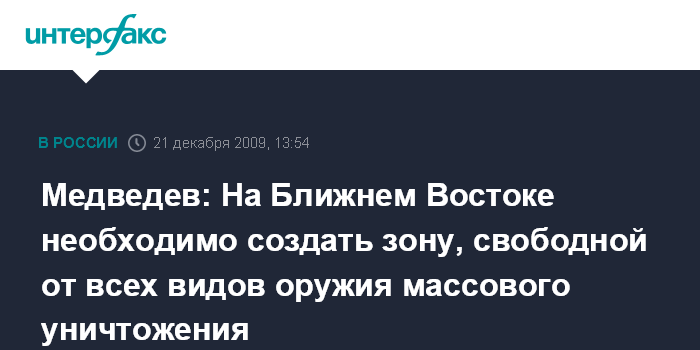Медведев: На Ближнем Востоке необходимо создать зону, свободной от всех видов оружия массового уничтожения