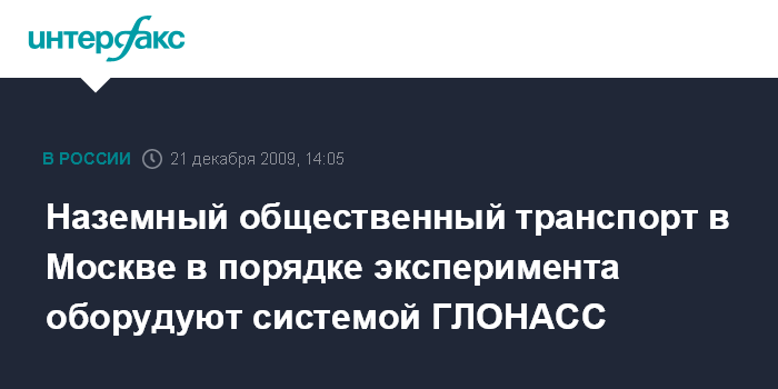 Москва. 21 декабря. INTERFAX.RU - До февраля в Москве пройдет эксперимент по оснащению наземного общественного транспорта системой спутниковой навигации ГЛОНАСС, сообщил генеральный директор ГУП "Мосгортранс" Петр Иванов.