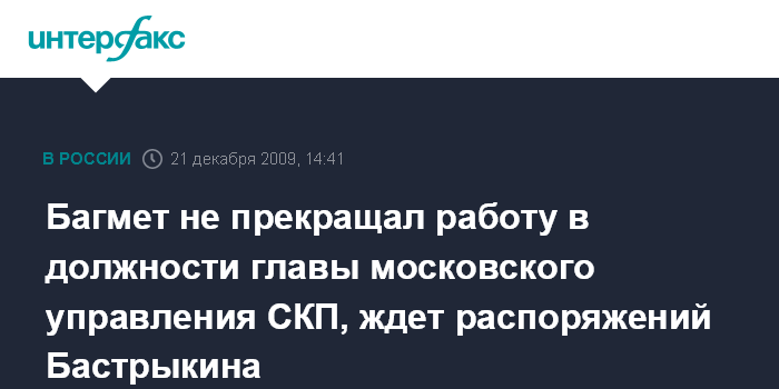 Москва. 21 декабря. INTERFAX.RU - Глава московского управления СКП РФ Анатолий Багмет продолжает работу на своем посту в обычном режиме.