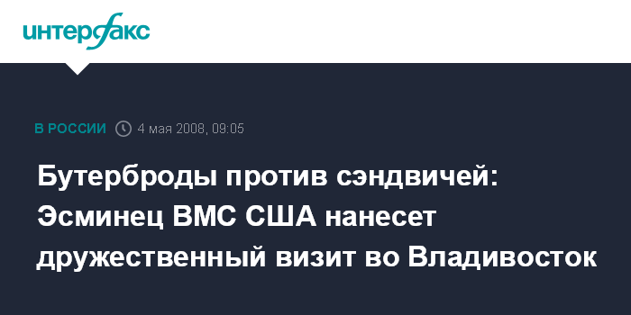Бутерброды против сэндвичей: Эсминец ВМС США нанесет дружественный визит во Владивосток