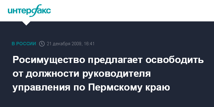 Росимущество предлагает освободить от должности руководителя управления по Пермскому краю