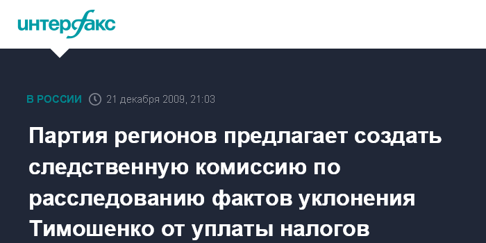 Партия регионов предлагает создать следственную комиссию по расследованию фактов уклонения Тимошенко от уплаты налогов