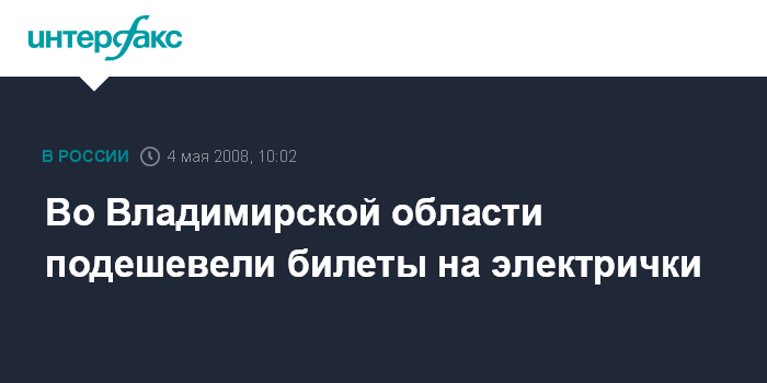 Владимир. 4 мая. INTERFAX.RU - С начала мая по конец сентября во Владимирской области снижены тарифы на пригородные пассажирские перевозки, которые осуществляет Горьковская железная дорога - филиал ОАО "Российские железные дороги", сообщили "Интерфаксу" в пресс-службе обладминистрации.