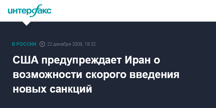 США предупреждает Иран о возможности скорого введения новых санкций