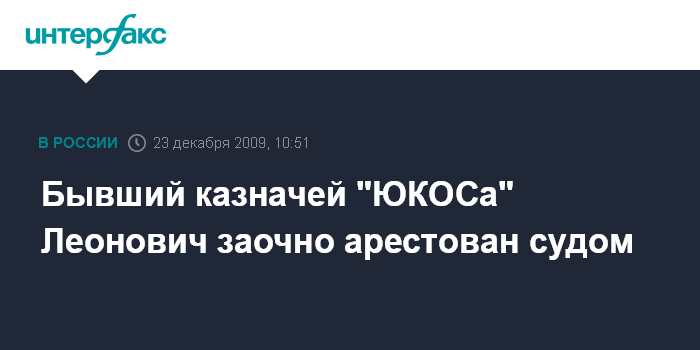 Бывший казначей "ЮКОСа" Леонович заочно арестован судом