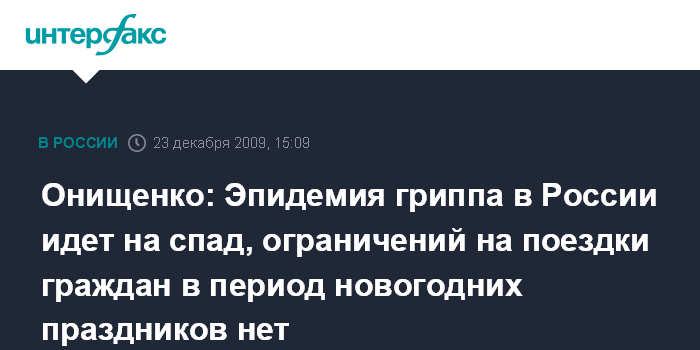 Онищенко: Эпидемия гриппа в России идет на спад, ограничений на поездки граждан в период новогодних праздников нет