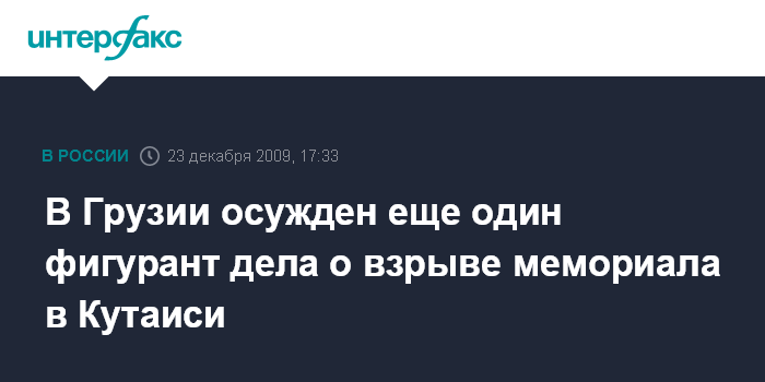 Москва. 23 декабря. INTERFAX.RU – Тбилисский городской суд в среду вынес приговор начальнику мобильного участка "Грузвзрывпрома" Элгудже Гадабадзе, причастному к взрыву монумента Славы в Кутаиси. Ему назначено двухмесячное предварительное заключение.
