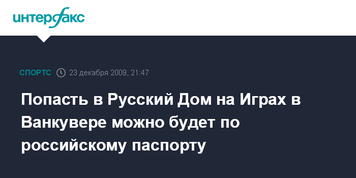 Попасть в Русский Дом на Играх в Ванкувере можно будет по российскому паспорту
