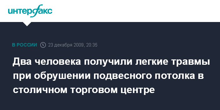 Два человека получили легкие травмы при обрушении подвесного потолка в столичном торговом центре