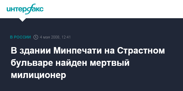 В здании Минпечати на Страстном бульваре найден мертвый милиционер