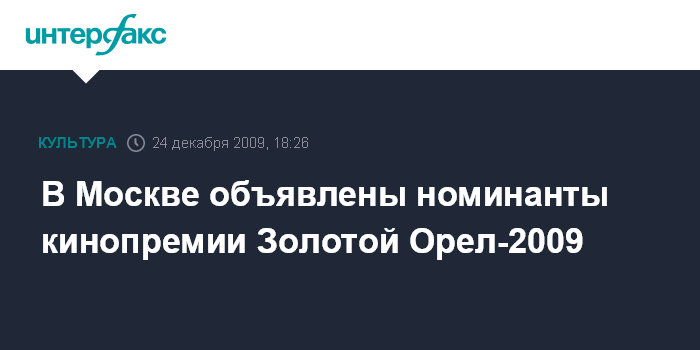 В Москве объявлены номинанты кинопремии Золотой Орел-2009