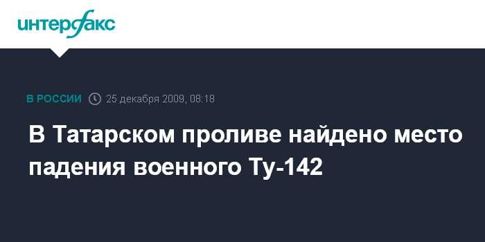 Москва. 25 декабря. INTERFAX.RU - Операция в Татарском проливе по поиску рухнувшего 6 ноября в море самолета Тихоокеанского флота Ту-142 увенчалась успехом.