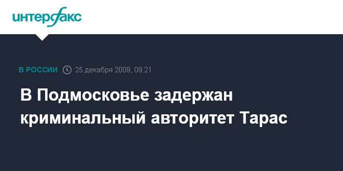 Москва. 25 декабря. INTERFAX.RU - В подмосковной Балашихе в четверг днем при задержании у криминального авторитета, известного под кличкой Тарас, изъяли наркотики, сообщил "Интерфаксу" источник в правоохранительных органах региона.