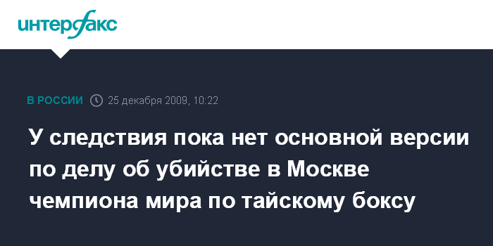 Москва. 25 декабря. INTERFAX.RU - Следствие по делу об убийстве чемпиона мира по тайскому боксу Абдуллаева пока не определилось с основной версией этого преступления, заявил "Интерфаксу" глава столичного управления СКП РФ Анатолий Багмет в пятницу.