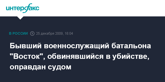 Москва. 25 декабря. INTERFAX.RU - Московский гарнизонный военный суд оправдал бывшего военнослужащего батальона "Восток" Аслана Делиева, обвинявшегося в убийстве, передает корреспондент "Интерфакса".