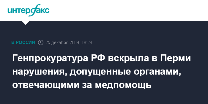 Генпрокуратура РФ вскрыла в Перми нарушения, допущенные органами, отвечающими за медпомощь
