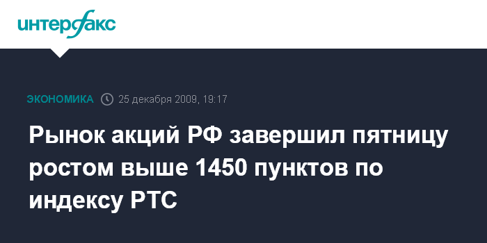 Москва. 25 декабря. INTERFAX.RU - Рынок акций РФ завершил торги в пятницу ростом большинства blue chips на фоне ослабления дефицита рублевой ликвидности и снижения доллара, что спровоцировало закрытие коротких позиций игроками; индекс РТС превысил 1450 пунктов.